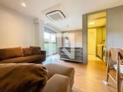 ...Apartamento mobiliado com 24m² privativos, em ambiente integrado com living e dormitório, mobiliado com cama de casal, móveis planejados, split, TV, cozinha equipada com fogão por indução, micro-ondas e frigobar. Banheiro com acabamento moderno e box...