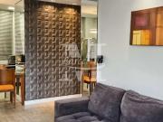 ...apartamento tipo Studio, 30º andar, pé direito alto, dormitório com banheiro social no mezanino – piso porcelanato no pavimento térreno, no mezanino piso laminado, armário, rack – cozinha americana, tampo granito com gabinete, cooktop, refrigerador,...