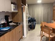 ...om sacada, cozinha, suíte e 1 vaga de garagem rotativa. Lavanderia coletiva. Imóvel totalmente mobiliado com poltronas, TV, fogão cooktop, micro-ondas, frigobar, cama de casa e ar condicionado além de armários instalados na cozinha, quarto e banheiro...