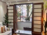 ...MOBILIADO (tal qual as fotos), vaga de garagem dupla, sala com sacada integrada com lareira e churrasqueira, living 2 ambientes, cozinha, área de serviço, andar alto, silencioso, bem iluminado, em rua nobre e arborizada, a 5 min do Bourbon Ipiranga....