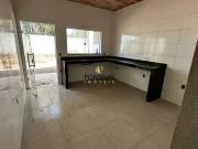...Casa espaçosa; - 3 quartos, sendo um c/ suíte; - 4 vagas de garagem; - Sala ampla conjugada com cozinha; - Cozinha com bancada; - Banheiro social; - Área de serviço; - Toda a casa interna possui moldura no teto e piso porcelanato; - Janelas em blinde...