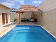 ...Praia Grande. Casa principal conta com: 03 dormitórios sendo 01 suítes, sala de TV, sala de jantar, ampla cozinha, banheiro social, e garagem coberta para 3 carros. Espaço gourmet coberto com churrasqueira a carvão, lavabo, piscina além de um amplo q...